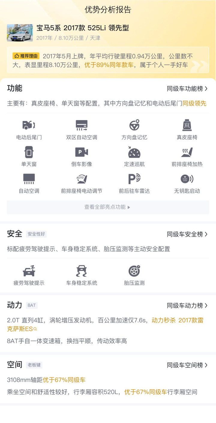 综上所述的新车含税价、用车成本、市场行情、优势分析、同款比价等数据仅供参考。在配置部分,因为二手车非标品,车辆可能会存在配置改装的情况,具体车况信息需要线下结合车辆实际情况进行综合参考。
